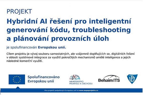 Společnost Behaim ITS zahájila ve spolupráci s naší katedrou realizaci projektu Hybridní AI řešení pro inteligentní generování kódu, troubleshooting a plánování provozních úloh (CZ.01.01.01/01/24_062/0007566).